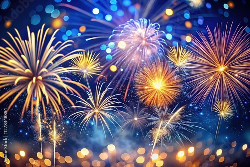 © Sunee, Naklejka premium Midnight Blue Fireworks: Minimalist New Year's Eve Macro Photography