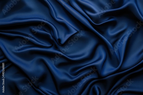 Fototapeta premium Midnight Blue Silk: Draped Fabric, Luxurious Texture, Elegant Mood