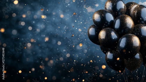 Naklejka premium Midnight Blue Velvety Background with Sparkling Black Balloons