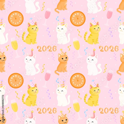 Obraz premium Midnight Countdown Cats seamless