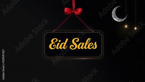 Naklejka premium Midnight Deals, Eid Sale Hanging on a Ribbon of Celebration