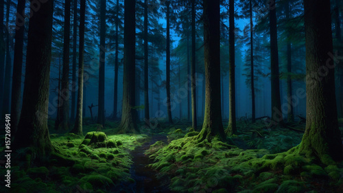 Obraz premium Midnight Silence in a Foggy Forest