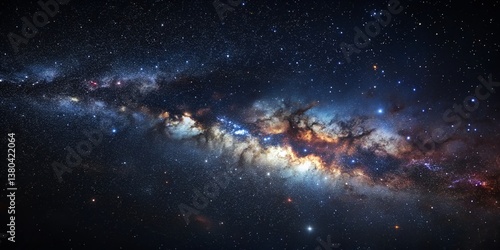 Obraz premium Midnight Starry Sky: Deep Space Astrophotography with High Depth of Field