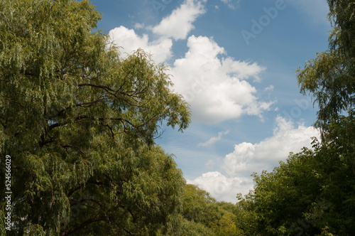 Obraz premium midsummer sky with clouds and willow trees