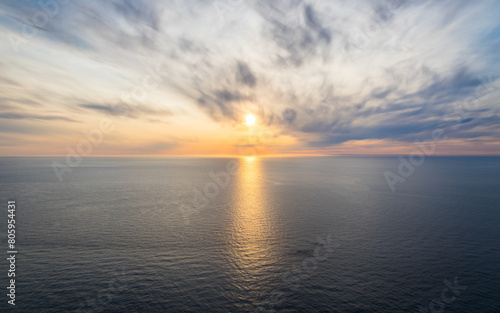 Naklejka premium Midsummer sun over the barentsea. Beautiful ocean background. Tranquil scene.