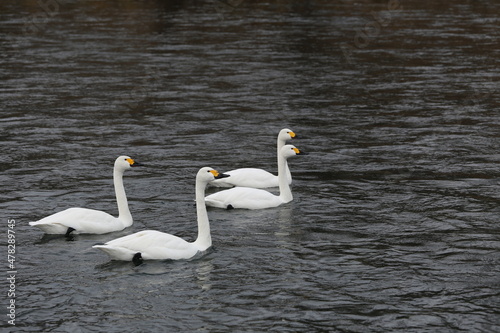 © 光二 岡藤, Fototapeta premium Midwinter swan takeoff and landing