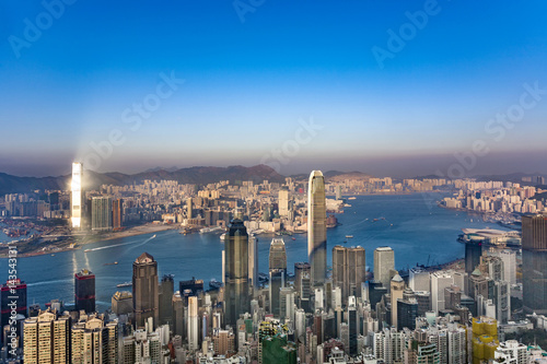 © travelview, Fototapeta premium Międzynarodowe Centrum Finansowe z panoramą miasta w Victoria, Hong Kong
