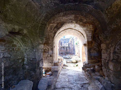 © Tatiana Nikitina, Fototapeta premium Miejsce prac konserwatorskich. Łuk starożytnej fortecy.