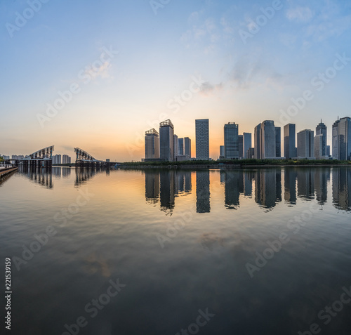 © hallojulie, Fototapeta premium miejska panorama i nowoczesne budynki o zmierzchu, pejzaż Chin.
