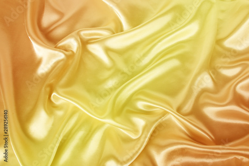 © kittyfly, Fototapeta premium miękkie fałdy na delikatnym żółtym błyszczącym jedwabiu, luksusowa koncepcja, tło dla projektanta, poziome, zbliżenie, kopia przestrzeń