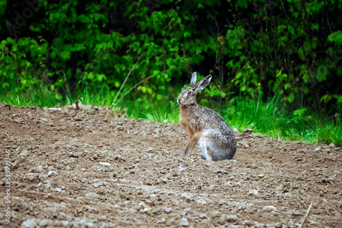 © JDziedzic, Fototapeta premium Mieszkańcem naszych pól jest coraz rzadszy zajć szarak Zając szarak (Lepus) w wiosennej scenerii pól