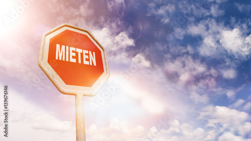 © MichaelJBerlin, Obraz premium Mieten auf rotem Stoppschild vor blauem Wolkenhimmel