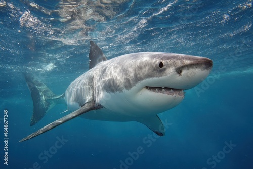 Fototapeta premium Mighty Ocean Predator: The Majestic Great White Shark in its Coastal Habitat
