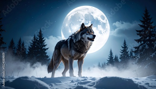 Naklejka premium Mighty werewolf, Halloween horror scene background