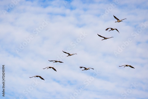 Fototapeta premium Migration Cranes at springtime on the sky