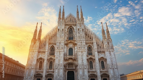 Fototapeta premium Milan Cathedral, an Italian architectural treasure at golden hour light