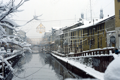 © Claudio Colombo, Fototapeta premium Milan: Naviglio Grande with snow