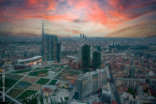 © pierluigipalazzi, Fototapeta premium Milan seen from above