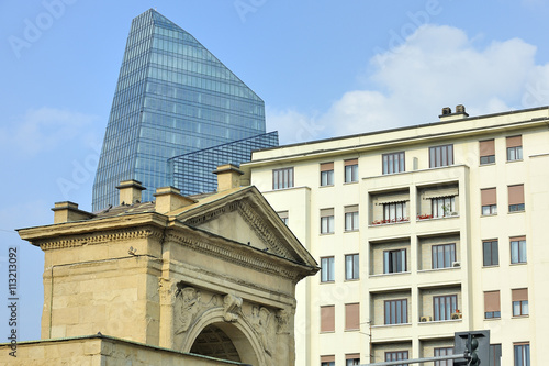 Naklejka premium Milano Porta Nuova arco antico e palazzi moderni
