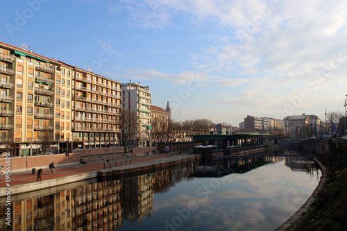 © mauro tombolini, Fototapeta premium Milano Porta Ticinese con darsena e cielo