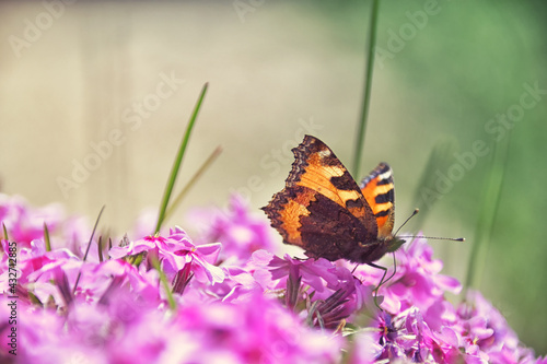 Obraz premium "Milber's Tortoise Butterfly, on the pink flowers
