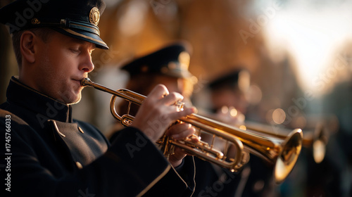 Obraz premium Military band performing at ceremonial event military musicians ceremonial...