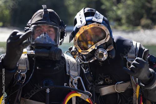 © Sved Oliver, Naklejka premium Military commercial divers with specialized helmets