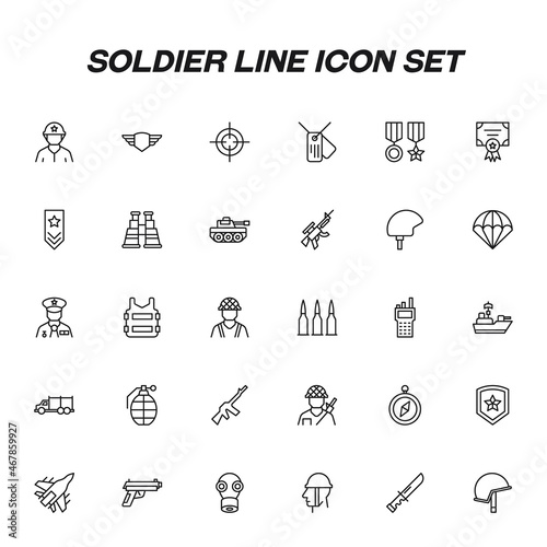 Fototapeta premium Military concept. Soldier line icon set perfect for logos, mobile apps,...