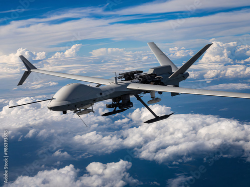 © Josif Rei, Obraz premium Military Drone Soaring Above the Clouds