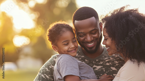 Fototapeta premium Military families reunited with loved ones at a homecoming event photo