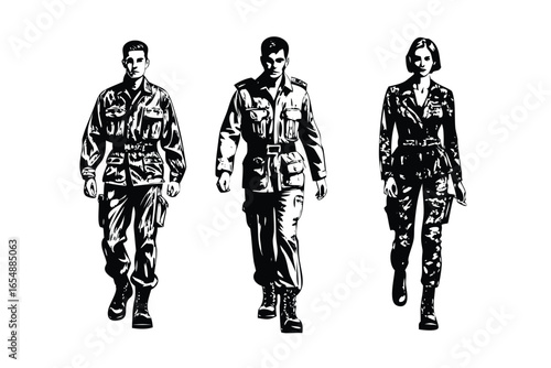 Fototapeta premium Military Fashion Vector Set - Engraved Tactical & Utility Style Illustrations