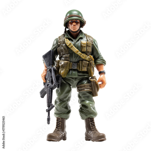 Naklejka premium Military figure, soldier in uniform, carrying rifle