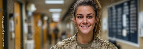 © tongpatong, Fototapeta premium Military girl student wears uniform