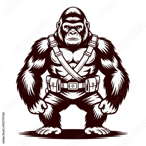 © Fathima, Fototapeta premium Military Gorilla in Combat Gear: Powerful, Determined, Isolated Vector