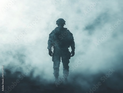 © Alexandr, Fototapeta premium Military Officer in Fog