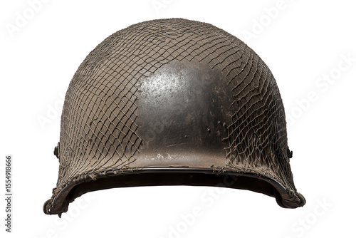 Obraz premium Military soldier helmet showcased against a clear backdrop highlighting its texture and design features for collectors and historical enthusiasts