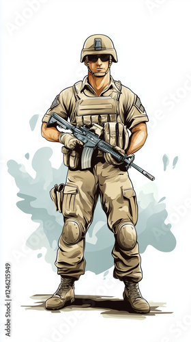 Fototapeta premium Military soldier standing confidently with weapon