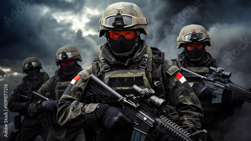 © candramawa, Obraz premium Military Soldiers Team Army Special Forces Combat Weapons War Danger Security Army