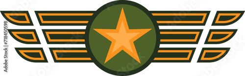 Fototapeta premium Military star wings emblem army air force badge. Graphic officer rank insignia symbol, airman vector illustration.