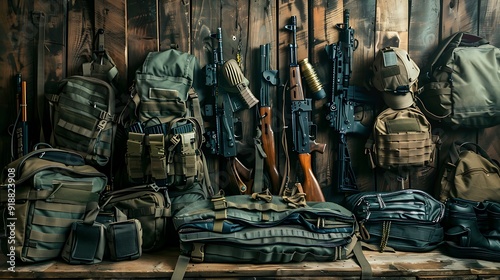 © QAISAR, Fototapeta premium Military tactical equipment ready for the departure