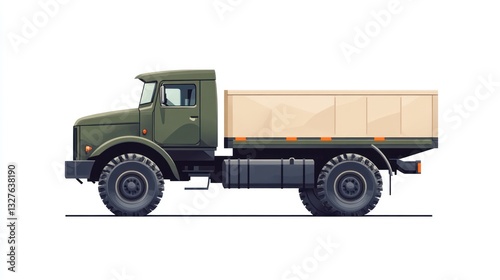 Fototapeta premium Militarystyle truck with flatbed and cargo cover ideal for transportation and...