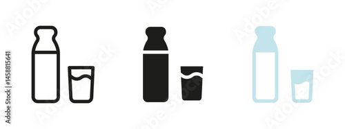 © MALAI Studio, Fototapeta premium Milk bottle and glass icon. Dairy drink container vector illustration. Classic symbol of fresh nutrition and healthy beverage. Breakfast product and calcium source pictogram.