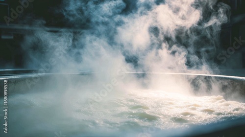 © Irina, Naklejka premium Milk pasteurization process with heating and rising steam