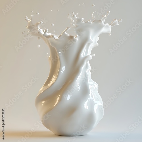 © Biplob, Naklejka premium Milk Splashing In Air Isolated Against Neutral Background High Quality Stock Photo