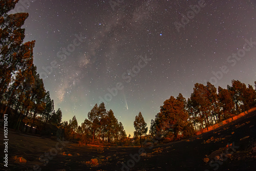 © David, Fototapeta premium Milky Way and Comet C/2023 A3 at the top of Gran Canaria