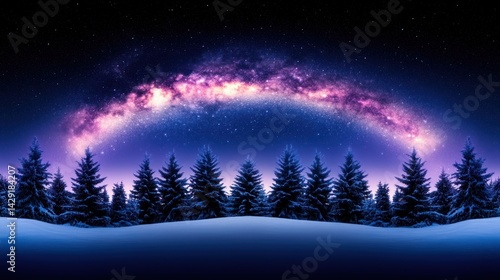 Fototapeta premium Milky Way Arcing Over Snowy Pine Forest at Night