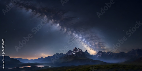 Naklejka premium Milky Way Galaxy Above Mountain Range at Night background