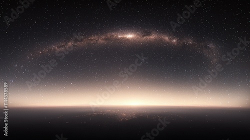 © kinara art design, Obraz premium Milky Way galaxy arc over a planet's horizon at sunrise.