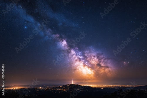 Fototapeta premium Milky Way Galaxy Over City Lights