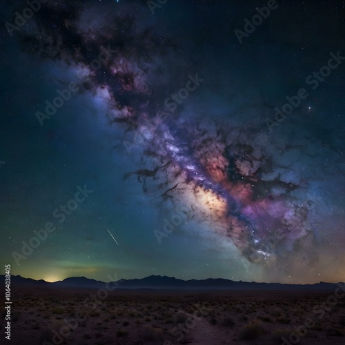 Fototapeta premium Milky Way Galaxy Over Desert Landscape Generative AI